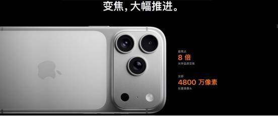 配置方面,屏幕刷新和前置摄像头与其他两款产品相同,iPhone 17 Pro系列后摄搭载三枚 4800 万像素摄像头,具备 8 倍光学品质变焦,最大等效焦距达 200 毫米,变焦幅度是 iPhone 历来最大。