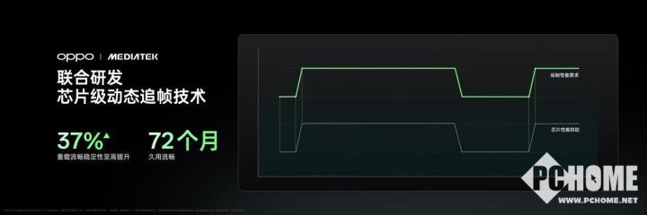 针对高温、高亮、高负载等容易产生卡顿而出现不流畅体验的问题,全新一代潮汐引擎首发OPPO 与联发科联合研发的芯片级动态追帧技术。基于 OPPO 对性能供需不平衡这一核心矛盾的深度认知,该技术通过实时追踪系统绘制需求,实现算力的智能动态供给,使重载场景下系统流畅稳定性最高提升 37% ,从底层保障手机即便使用 6 年仍能保持久用流畅。