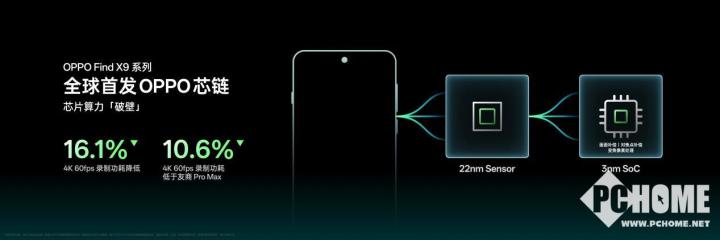 以影像领域为例,过去影像创作者高频使用的 4K 60 帧 HDR 视频录制,由于拍摄环境复杂、资源调动多,功耗不亚于最高画质的大型手游。而其中的关键任务如对焦、变焦、画面补偿等,却由制程仅为 22nm 的 Sensor 执行,先进制程的 SoC 参与有限,容易导致发热、卡顿问题。而搭载全新一代 OPPO 潮汐引擎与 OPPO 芯链后,一些原本由 Sensor 承担的高负载任务直接调用 3nm 旗舰芯片算力,这不仅让 4K 60 帧 HDR 视频录制功耗至高降低 16.1% ,更极大地提升影像系统计算效率,让数千万乃至亿级像素数的处理成为可能。