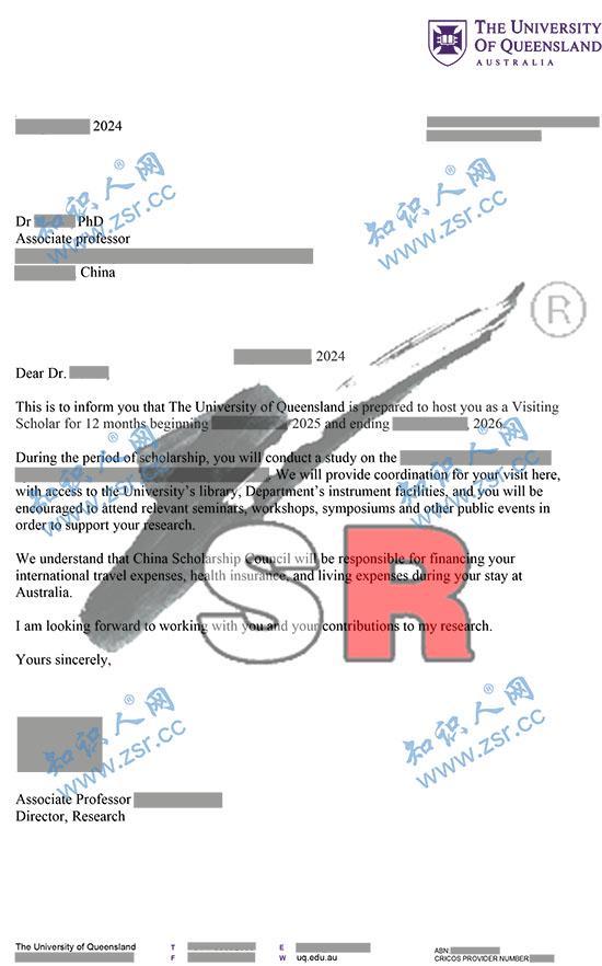 接受委托后,我们深入分析了G老师的研究背景,利用我们的信息资源优势及经验,精准匹配了澳大利亚著名的“八校联盟”,先后获得新南威尔士大学昆士兰大学的积极反馈,经面试后对方均表示了强烈的接收意愿。特别是昆士兰大学,导师任教于人文与社会科学学部政治科学与国际研究学院,研究领域包括全球政治经济、金融与发展、联合国可持续发展目标等,与G老师的研究有重合,导师也认为这是促成双方合作开展研究的利好机会,为了取得院系的同意,我们又填写了访问学者意向书,详细描述了与导师及学院合作开展研究的前景,最终获得了院系领导的同意,发来了邀请函